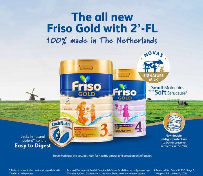 Friso introduced the new Friso Gold with 2'-FL on 1 June 2020. With no added sucrose or flavouring, the taste of the New Friso Gold with 2'-FL is lighter, gentler, and most importantly, more natural for more goodness for your child!